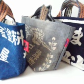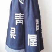 さて、いつもお世話になっている古道具と雑貨のお店origamiさんに、法被リメイクのワイドパンツを納品してきました。