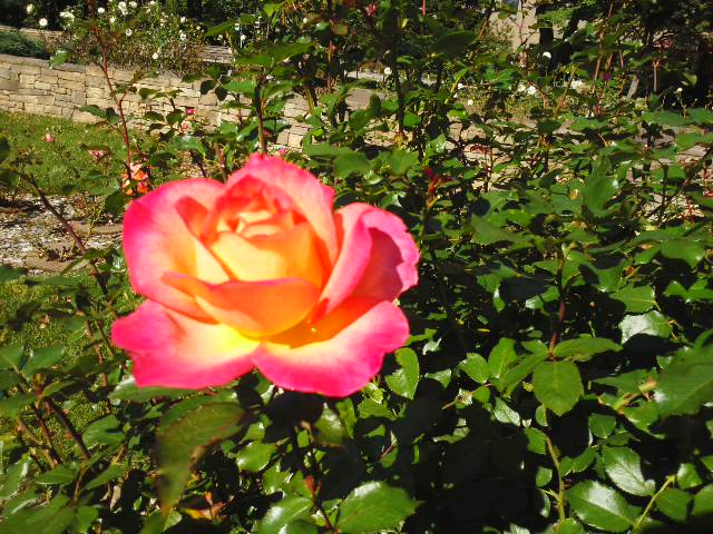 会場の資料館前、大通りバラ園では秋のバラが綺麗に咲いています。