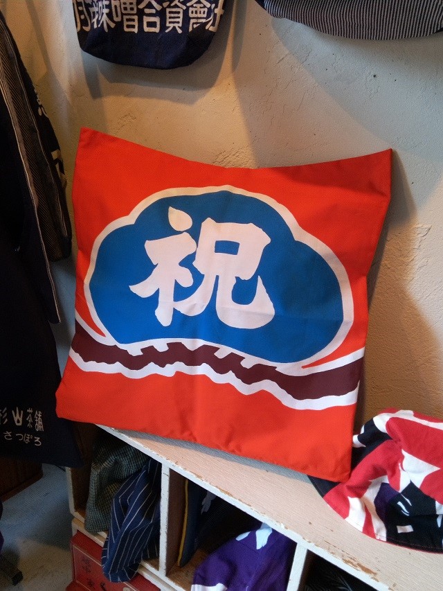 今回は大漁旗からクッションカバーを作りましたよ。