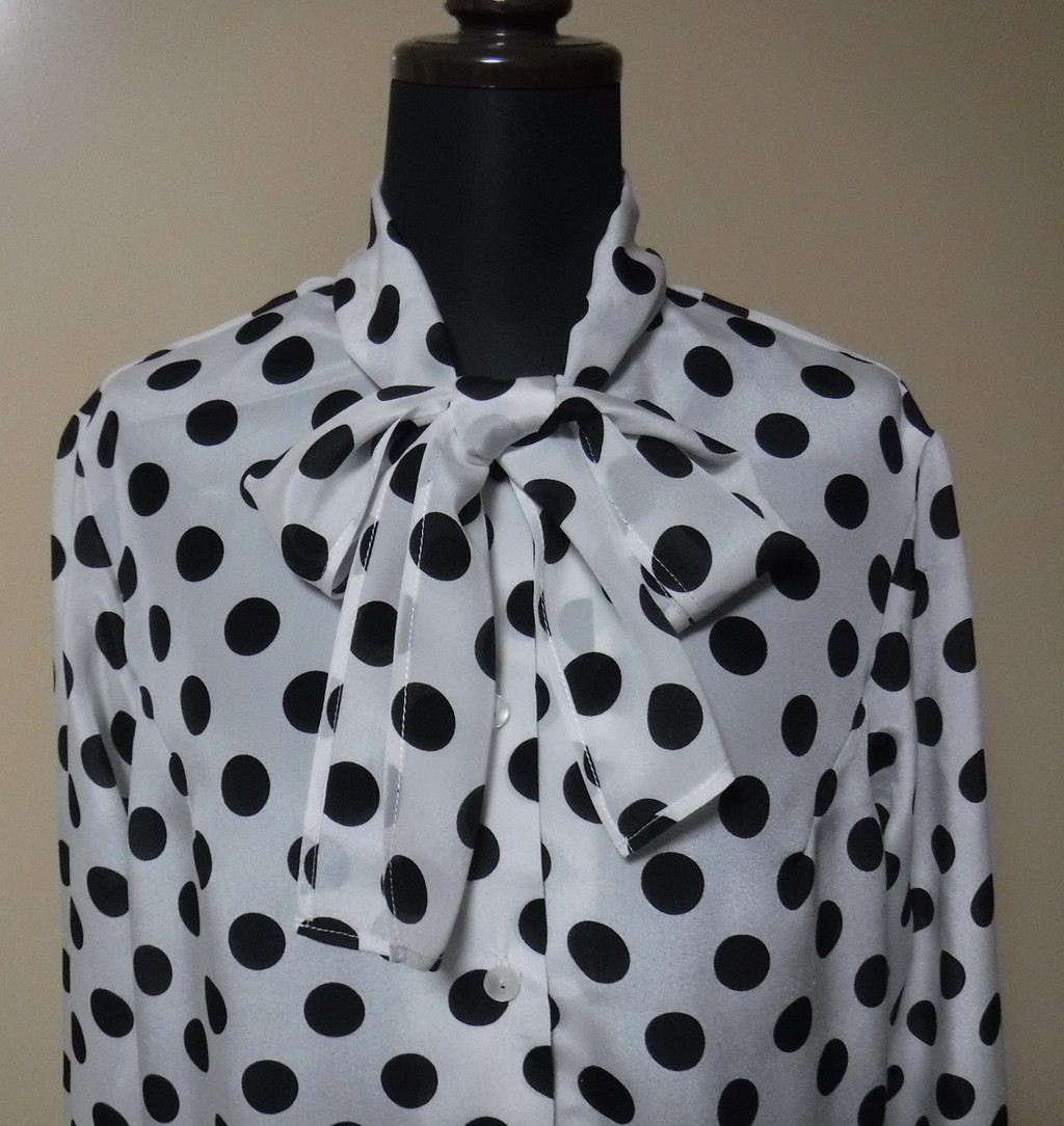 幅広のリボンが襟元を飾るボータイのシャツブラウスをお仕立てしました。